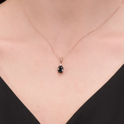 Подвеска с 1 бриллиантом природным, 0.02 карат, огранка круг 57 граней, цвет 3, чистота 6, тип огранки А; 1 сапфиром природным, 1.44 карат, цвет 2, чистота 2, тип огранки Б; Розовое золото 585 пробы.