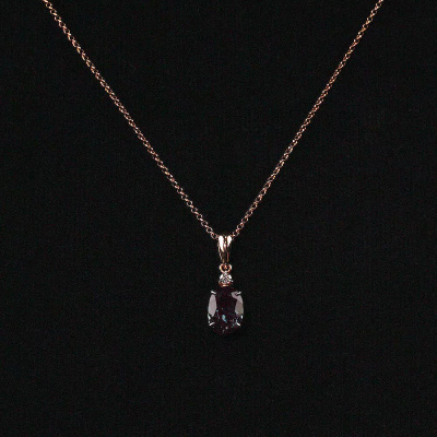 Подвеска с 1 бриллиантом природным, 0.02 карат, огранка круг 57 граней, цвет 3, чистота 6, тип огранки А; 1 александритом синтетическим, 1.58 карат; Розовое золото 585 пробы.
