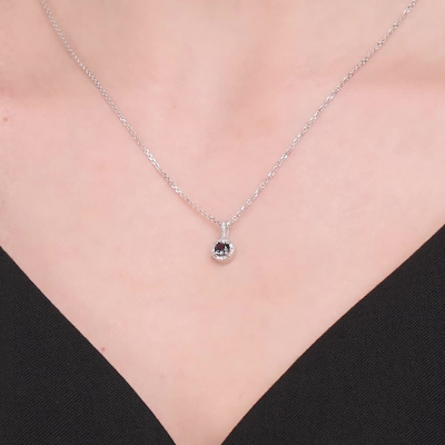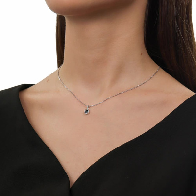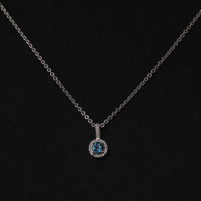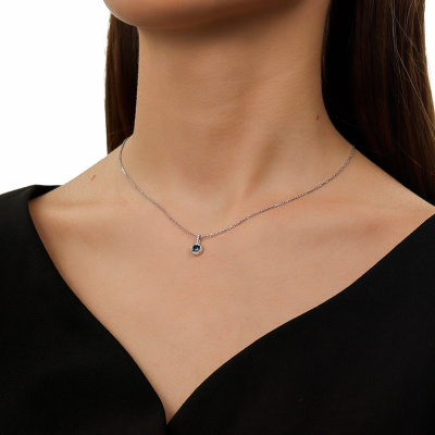 Подвеска с 17 бриллиантами природными, 0.04 карат, огранка круг 17 граней, цвет 2, чистота 2, тип огранки А; 1 топазом лондон природным, 0.29 карат; Белое золото 585 пробы.