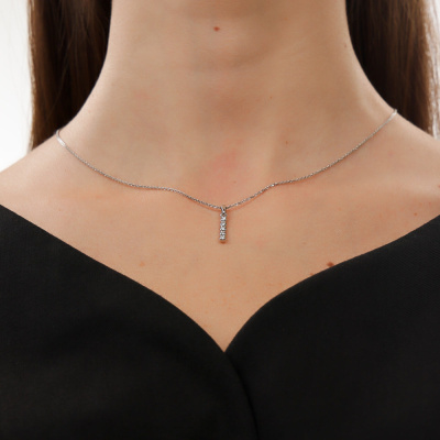 Подвеска с 5 бриллиантами природными, 0.13 карат, огранка круг 57 граней, цвет 4, чистота 6, тип огранки А; Белое золото 585 пробы.