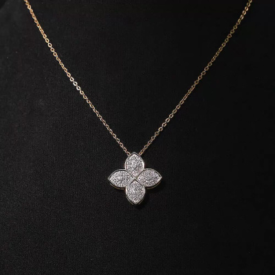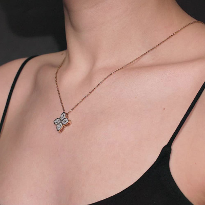 Подвеска с 48 бриллиантами природными, 0.32 карат, огранка круг 57 граней, цвет 3, чистота 6, тип огранки А; Желтое золото 585 пробы.