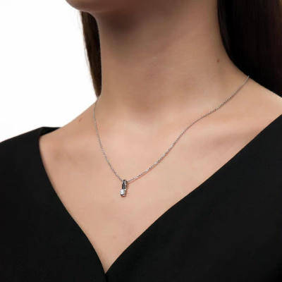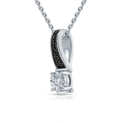 Подвеска с 1 бриллиантом природным, 0.02 карат, огранка круг 57 граней, цвет 3, чистота 6, тип огранки А; 4 бриллиантами черными природными облагороженными, 0.01 карат, огранка круг 57 граней, цвет 7, чистота 6, тип огранки А; 6 бриллиантами черными природными облагороженными, 0.01 карат, огранка круг 57 граней, цвет 7, чистота 6, тип огранки А; Белое золото 585 пробы.