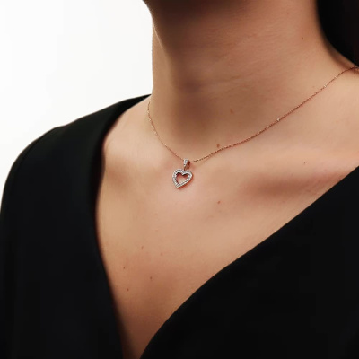 Подвеска с 1 бриллиантом природным, 0.008 карат, огранка круг 57 граней, цвет 3, чистота 6, тип огранки А; 30 бриллиантами природными, 0.11 карат, огранка круг 17 граней, цвет 2, чистота 2, тип огранки А; Розовое золото 585 пробы.