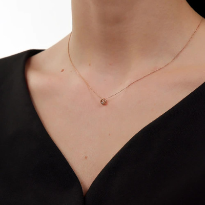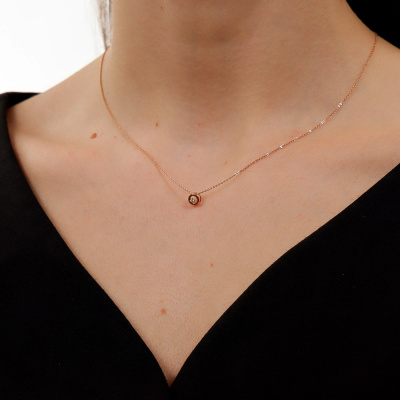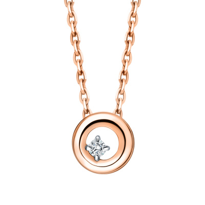 Подвеска с 1 бриллиантом природным, 0.01 карат, огранка круг 57 граней, цвет 3, чистота 6; Розовое золото 585 пробы.