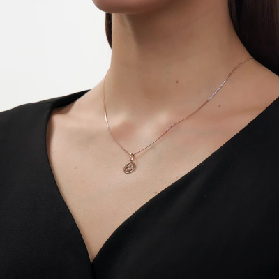 Подвеска с 1 бриллиантом природным, 0.003 карат, огранка круг 17 граней, цвет 2, чистота 2, тип огранки Б; Розовое золото 585 пробы.