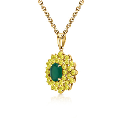 Золотая подвеска с агатами природными и сапфирами природными