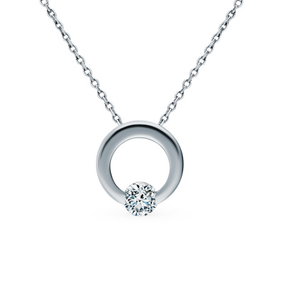 Подвеска с 1 бриллиантом природным, 0.09 карат, огранка круг 57 граней, цвет 3, чистота 5, тип огранки А; Белое золото 585 пробы.