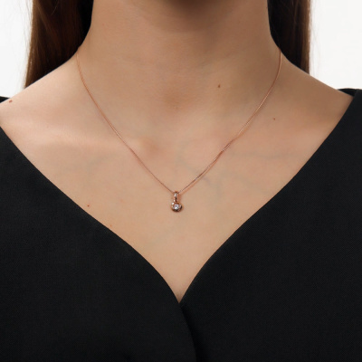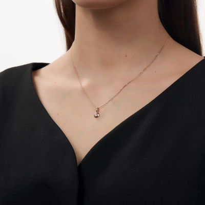 Подвеска с 1 бриллиантом природным, 0.11 карат, огранка круг 57 граней, цвет 4, чистота 5, тип огранки А; Розовое золото 585 пробы.