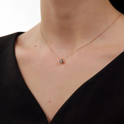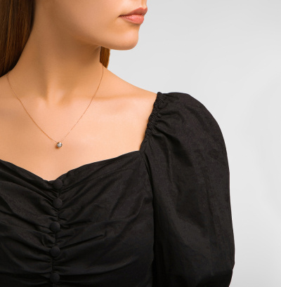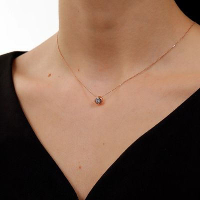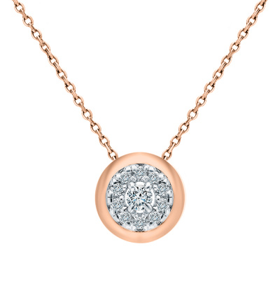 Подвеска с 1 бриллиантом природным, 0.03 карат, огранка круг 57 граней, цвет 3, чистота 6, тип огранки А; 10 бриллиантами природными, 0.03 карат, огранка круг 17 граней, цвет 2, чистота 2, тип огранки А; Розовое золото 585 пробы.