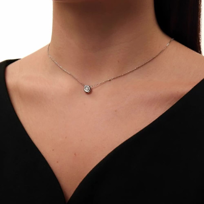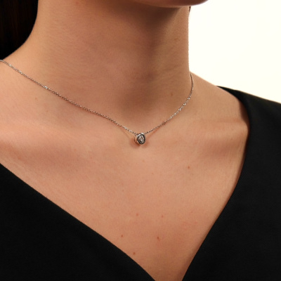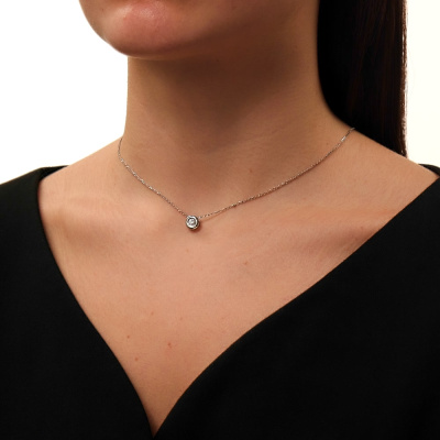 Подвеска с 1 бриллиантом природным, 0.1 карат, огранка круг 57 граней, цвет 3, чистота 6, тип огранки А; Белое золото 585 пробы.