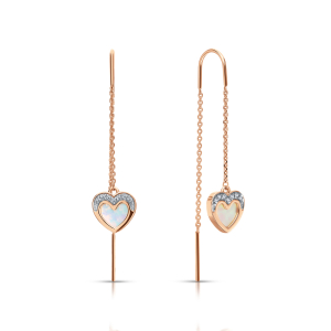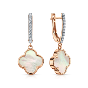 Золотые серьги с бриллиантами природными и перламутром природным