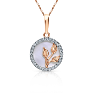 Золотая подвеска с бриллиантами природными и перламутром природным