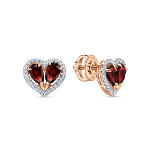 Золотые серьги с бриллиантами природными и гранатами природными
