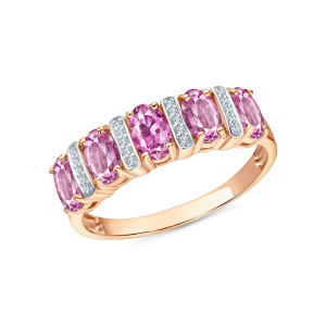 Золотое кольцо с розовым кварцем и бриллиантами