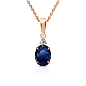Золотая подвеска с бриллиантами выращенными и сапфирами выращенными