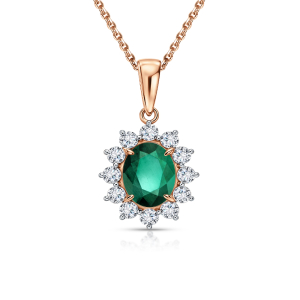 Золотая подвеска с бриллиантами выращенными и изумрудами выращенными