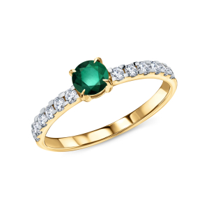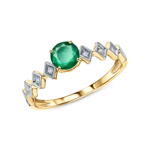 Золотое кольцо с бриллиантами природными и изумрудом природным