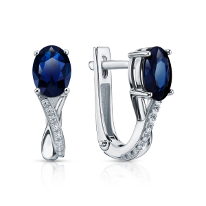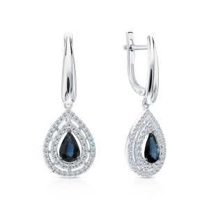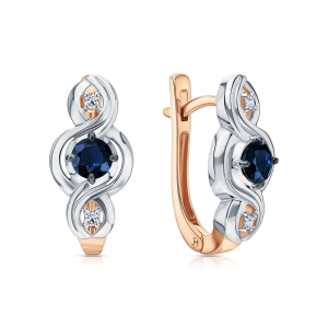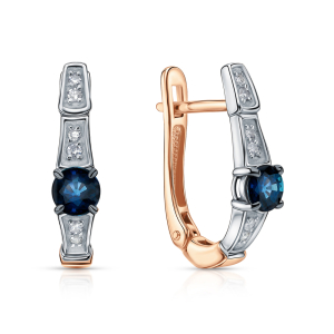 Золотые серьги с бриллиантами природными и сапфирами природными