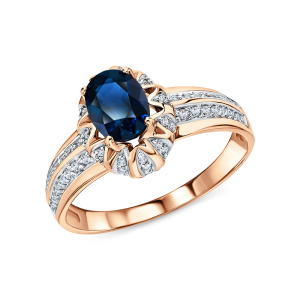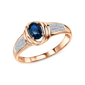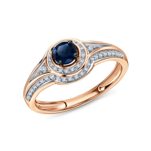 Золотое кольцо с бриллиантами природными и сапфиром природным