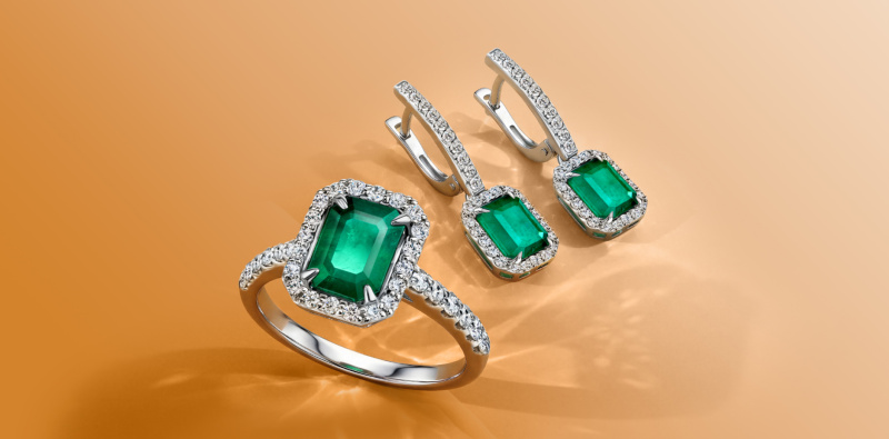Золотые серьги с бриллиантами природными и изумрудами природными
