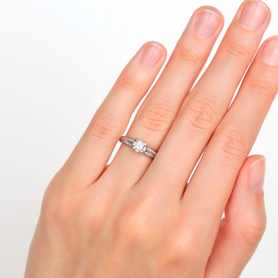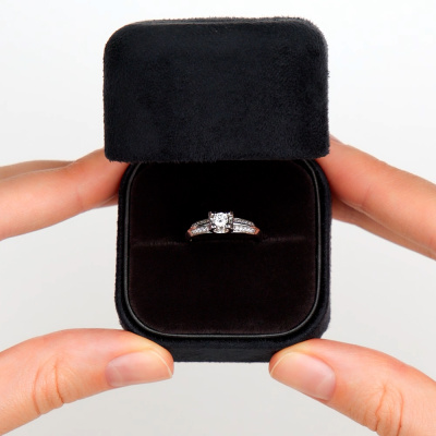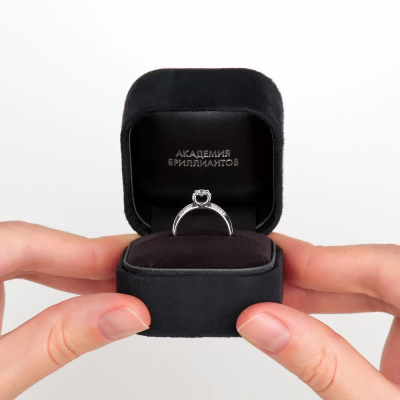 Кольцо с 1 бриллиантом природным, 0.14 карат, огранка круг 57 граней, цвет 3, чистота 6, тип огранки А; 20 бриллиантами природными, 0.05 карат, огранка круг 57 граней, цвет 3, чистота 6, тип огранки А; Белое золото 585 пробы.