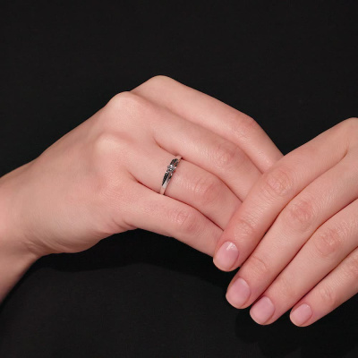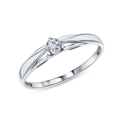 Кольцо с 1 бриллиантом, 0.09 карат, огранка круг 57 граней, цвет 3, чистота 6, тип огранки А; Белое золото 585 пробы.