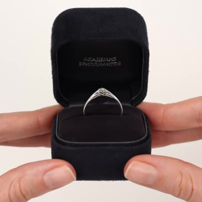 Кольцо с 1 бриллиантом природным, 0.101 карат, огранка круг 57 граней, цвет 3, чистота 6, тип огранки А; Белое золото 585 пробы.