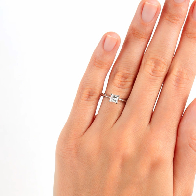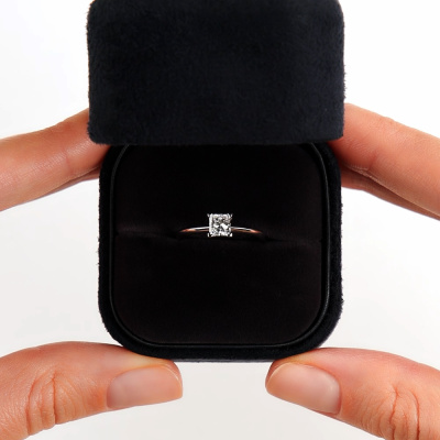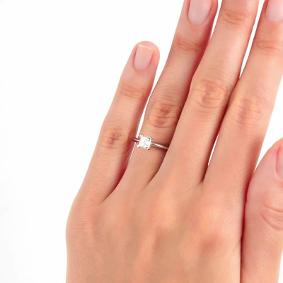 Кольцо с 1 бриллиантом природным, 0.5 карат, огранка принцесса 65 граней, цвет 4, чистота 6, тип огранки А; Белое золото 585 пробы.