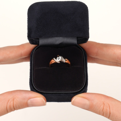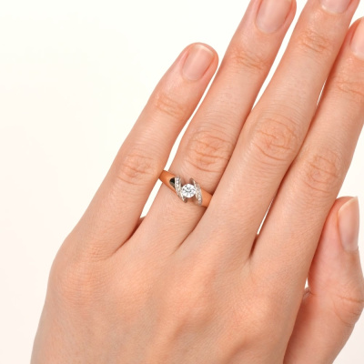 Кольцо с 1 бриллиантом природным, 0.23 карат, огранка круг 57 граней, цвет 3, чистота 6, тип огранки А; 16 бриллиантами природными, 0.06 карат, огранка круг 57 граней, цвет 3, чистота 6, тип огранки А; Розовое золото 585 пробы.
