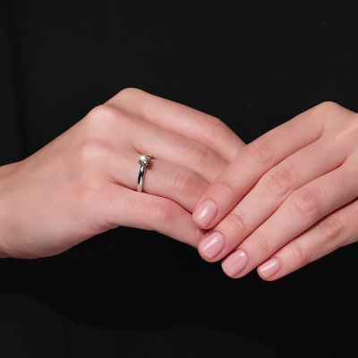 Кольцо с 1 бриллиантом природным, 0.4 карат, огранка круг 57 граней, цвет 4, чистота 7, тип огранки А; Белое золото 585 пробы.