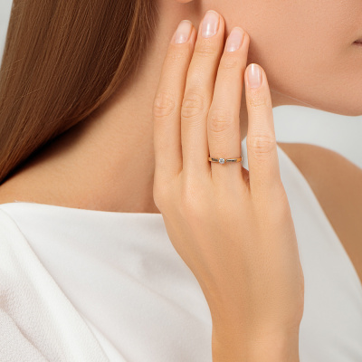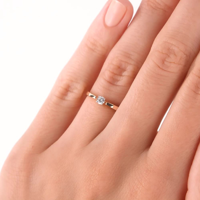 Кольцо с 1 бриллиантом природным, 0.08 карат, огранка круг 57 граней, цвет 3, чистота 6, тип огранки А; Розовое золото 585 пробы.