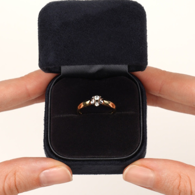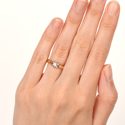 Кольцо с 1 бриллиантом природным, 0.051 карат, огранка круг 57 граней, цвет 4, чистота 6, тип огранки А; Желтое золото 585 пробы.