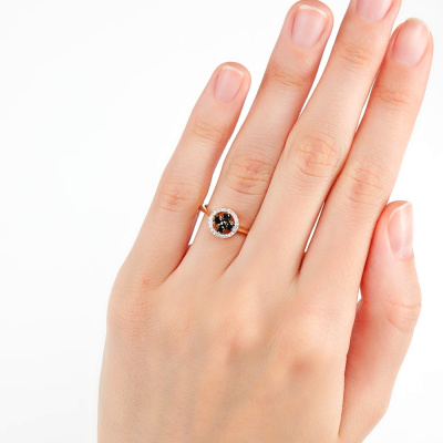 Золотое кольцо с бриллиантами природными и бриллиантами черными природными