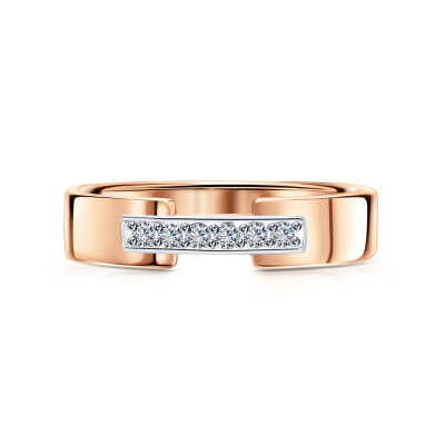 Кольцо с 6 бриллиантами, 0.04 карат, огранка круг 17 граней, цвет 2, чистота 2, тип огранки Б; Розовое золото 585 пробы.