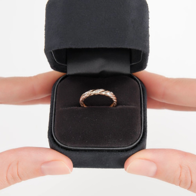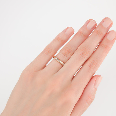Кольцо с 9 бриллиантами, 0.06 карат, огранка круг 17 граней, цвет 2, чистота 2, тип огранки Б; Розовое золото 585 пробы.