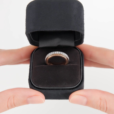 Кольцо с 32 бриллиантами природными, 0.72 карат, огранка круг 57 граней, цвет 3, чистота 6, тип огранки А; Розовое и белое золото 585 пробы.