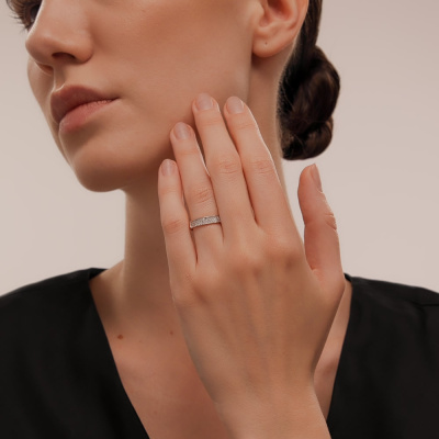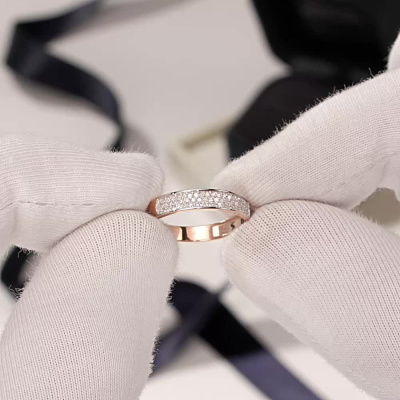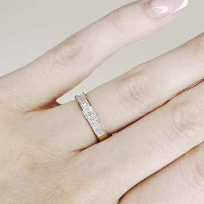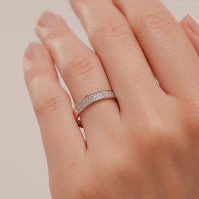 Кольцо с 55 бриллиантами, 0.14 карат, огранка круг 17 граней, цвет 2, чистота 2, тип огранки Б; Розовое золото 585 пробы.