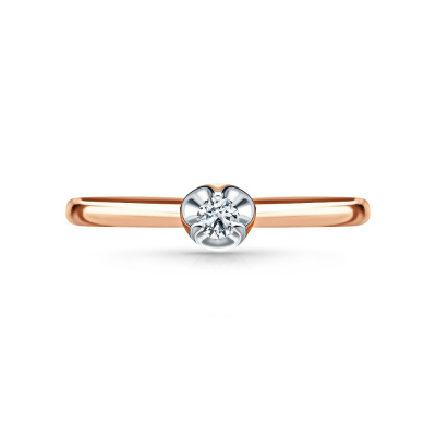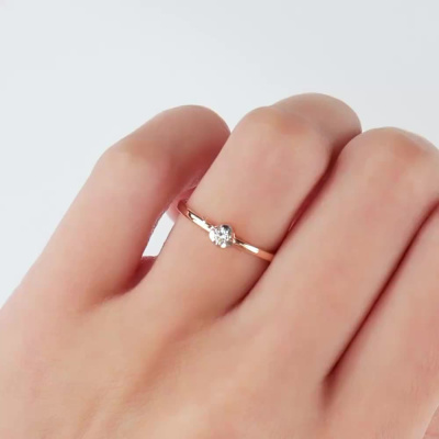 Кольцо с 1 бриллиантом природным, 0.04 карат, огранка круг 57 граней, цвет 4, чистота 6, тип огранки А; Розовое золото 585 пробы.