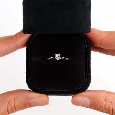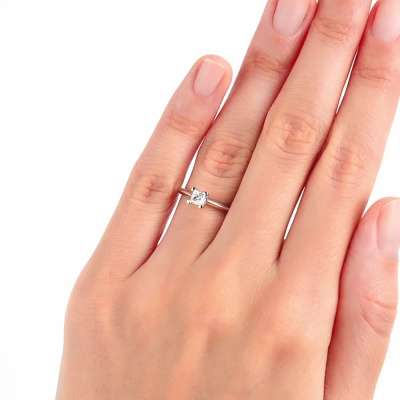 Кольцо с 1 бриллиантом природным, 0.24 карат, огранка принцесса 65 граней, цвет 3, чистота 6, тип огранки А; Белое золото 585 пробы.