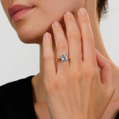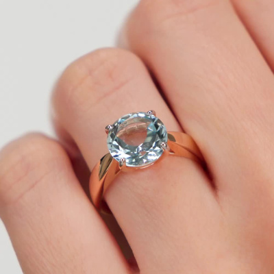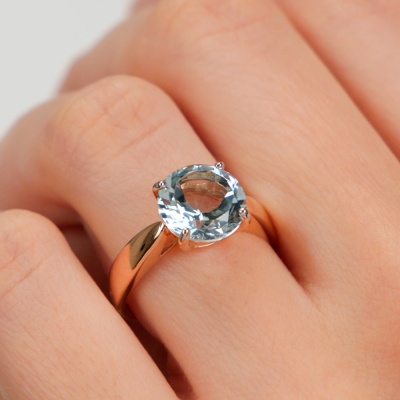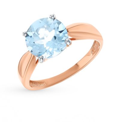 Кольцо с 1 топазом скай природным, 3.17 карат; Розовое золото 585 пробы.