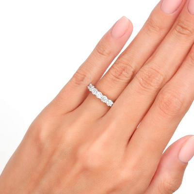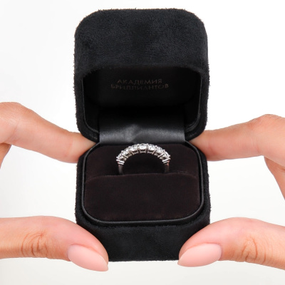 Кольцо с 7 бриллиантами природными, 0.915 карат, огранка круг 57 граней, цвет 3, чистота 6, тип огранки А; Белое золото 585 пробы.