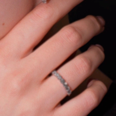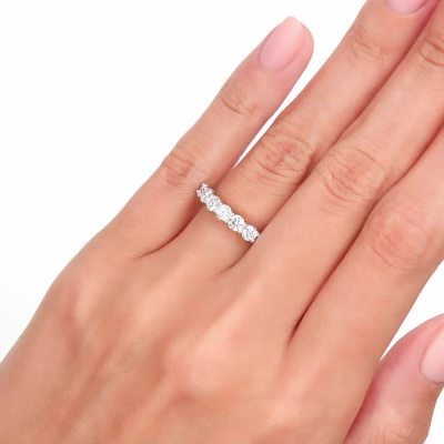 Кольцо с 7 бриллиантами природными, 0.91 карат, огранка круг 57 граней, цвет 3, чистота 6, тип огранки А; Белое золото 585 пробы.
