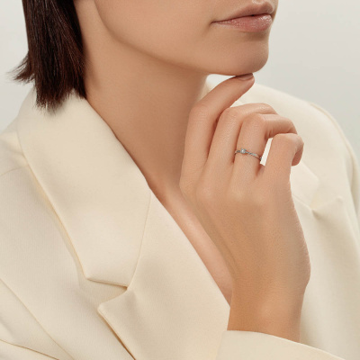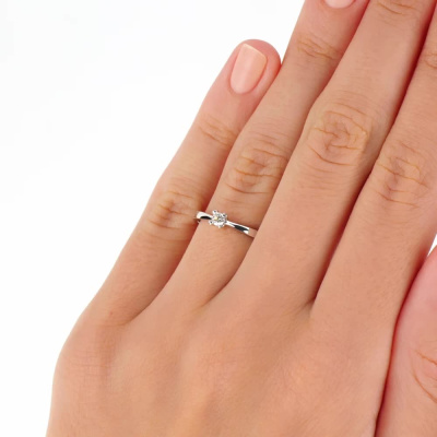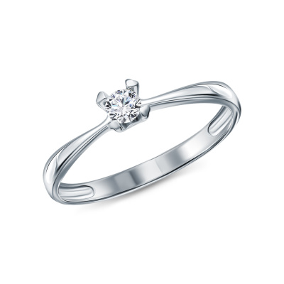 Кольцо с 1 бриллиантом природным, 0.08 карат, огранка круг 57 граней, цвет 4, чистота 6, тип огранки А; Белое золото 585 пробы.