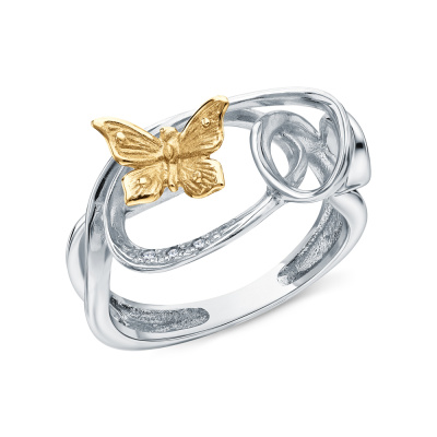 Кольцо с 3 бриллиантами природными, 0.02 карат, огранка круг 57 граней, цвет 4, чистота 5, тип огранки А; Желтое и белое золото 585 пробы.