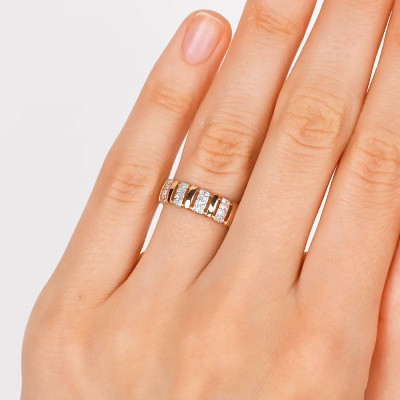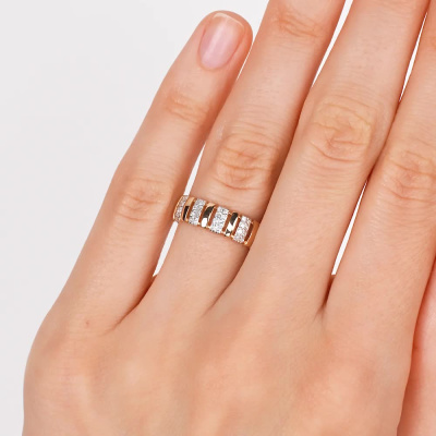 Кольцо «Бриллианты Якутии» с 40 бриллиантами, 0.169 карат, огранка круг 17 граней, цвет 2, чистота 2, тип огранки Б; Розовое золото 585 пробы.