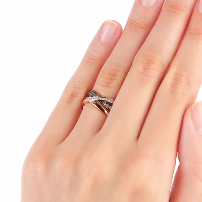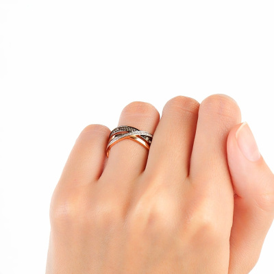 Золотое кольцо с бриллиантами и бриллиантами коньячными природными