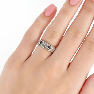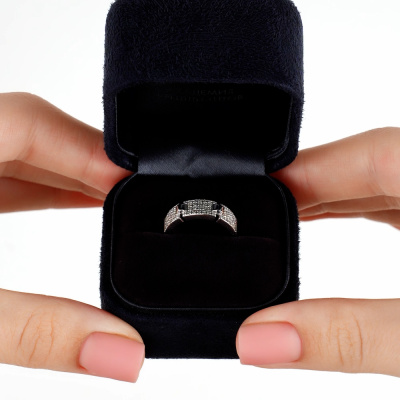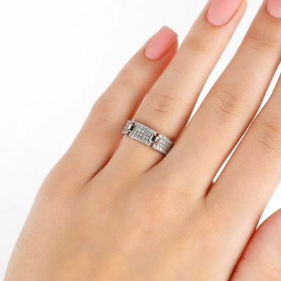 Кольцо с 60 бриллиантами природными, 0.171 карат, огранка круг 17 граней, цвет 2, чистота 2, тип огранки А; Белое золото 585 пробы.