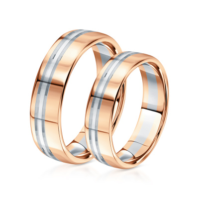 Кольцо с комфортной посадкой Белое золото, розовое золото 585 пробы.