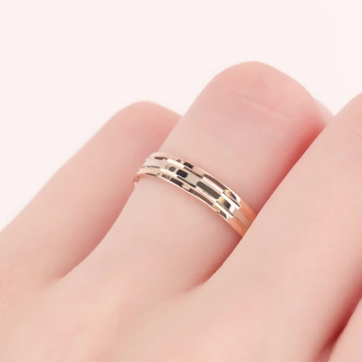 Кольцо с комфортной посадкой Белое золото, розовое золото 585 пробы.
