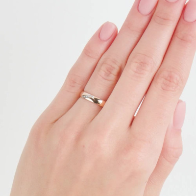 Кольцо с 5 бриллиантами природными, 0.01 карат, огранка круг 17 граней, цвет 2, чистота 2, тип огранки Б; Розовое золото 585 пробы.